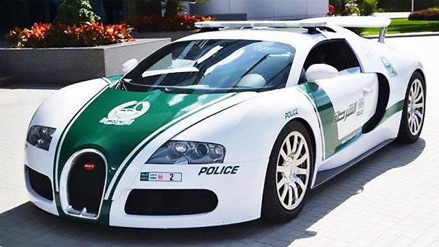 O Bugatti Veyron EB 16.4 é conhecido por ser o carro mais rápido do mundo pelo Guinness World Records, o Livro dos Recordes. Com um motor W16 tetraturbo de 8.0 litros, pode chegar de 0 a 100 km em 2,4 segundos a uma velocidade máxima de 407 km/h. A polícia de Dubai possui este carro que está avaliado em US$ 1,5 milhões.